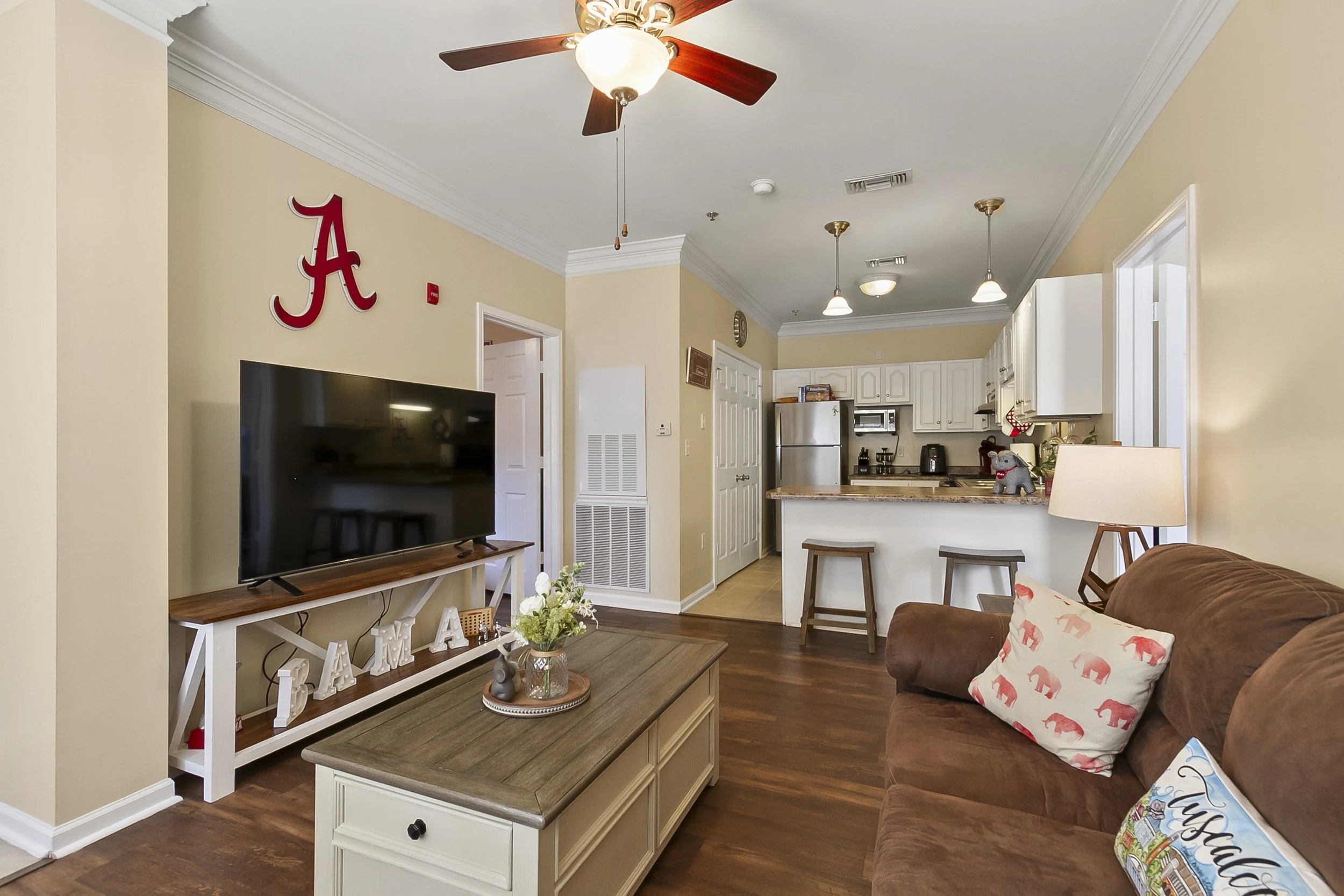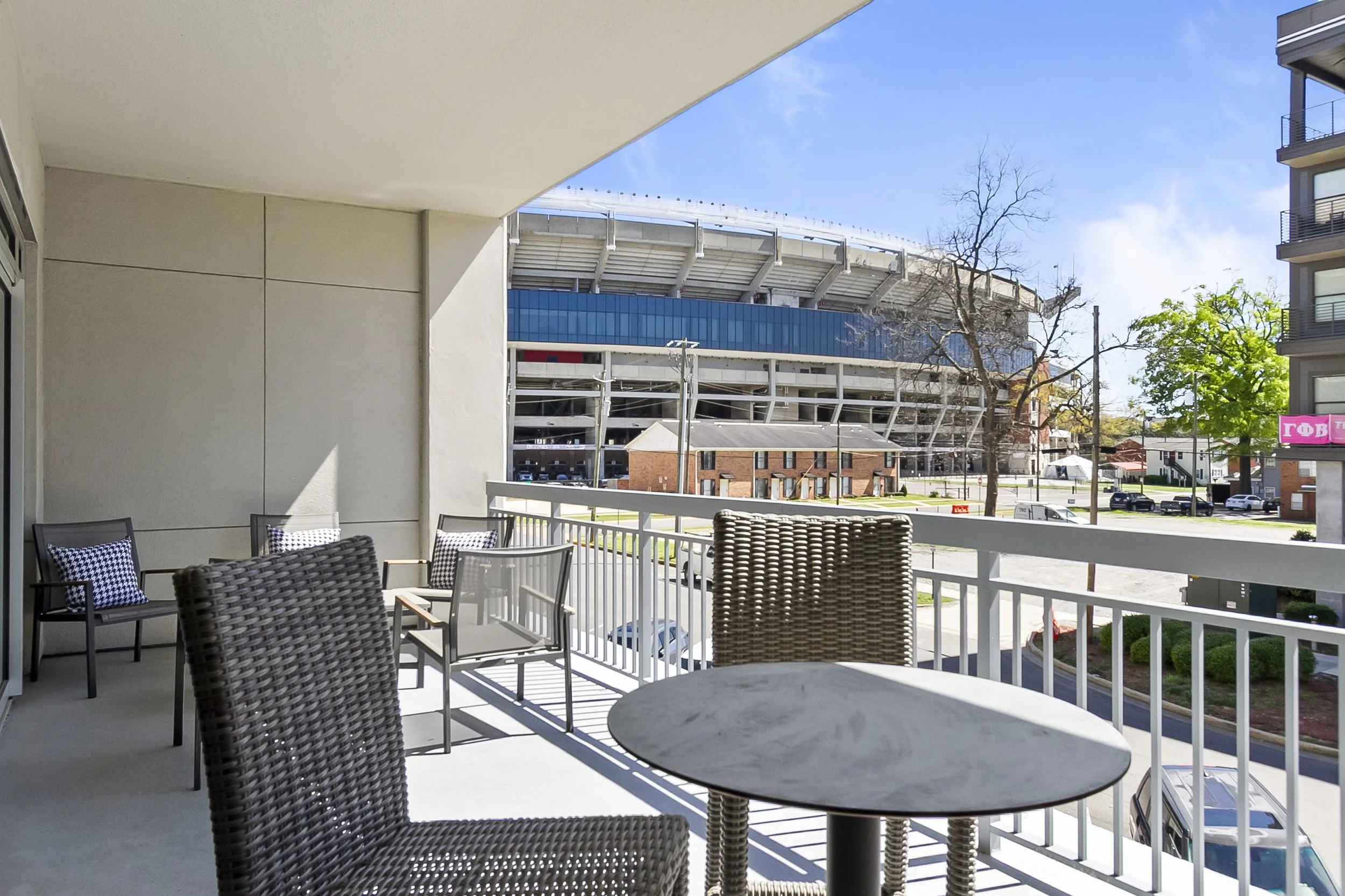 Turnkey game-day residence steps from Bryant-Denny Stadium. Offered fully furnished with bonus bunkroom, covered balcony, Sub-Zero and Wolf appliances, hardwood floors, and SkyGate rooftop access.